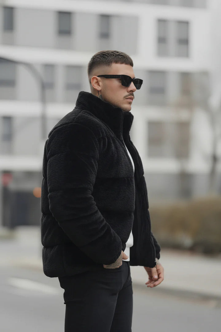 Men’s Sherpa Puffer Jacket – Black Premium Imported Sherpa With Inner Warding for extra Warmth and Comfort Trendy, Versatile Design – Ideal for Casual and Streetwear Looks Two Sides and One inside Pocket for Everyday Essential