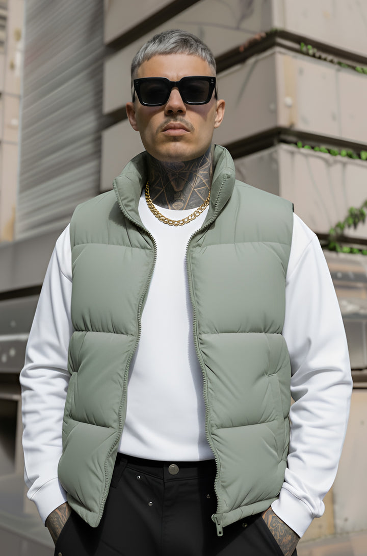 Men’s Half-Sleeve Puffer Jacket – Green ( Sage )